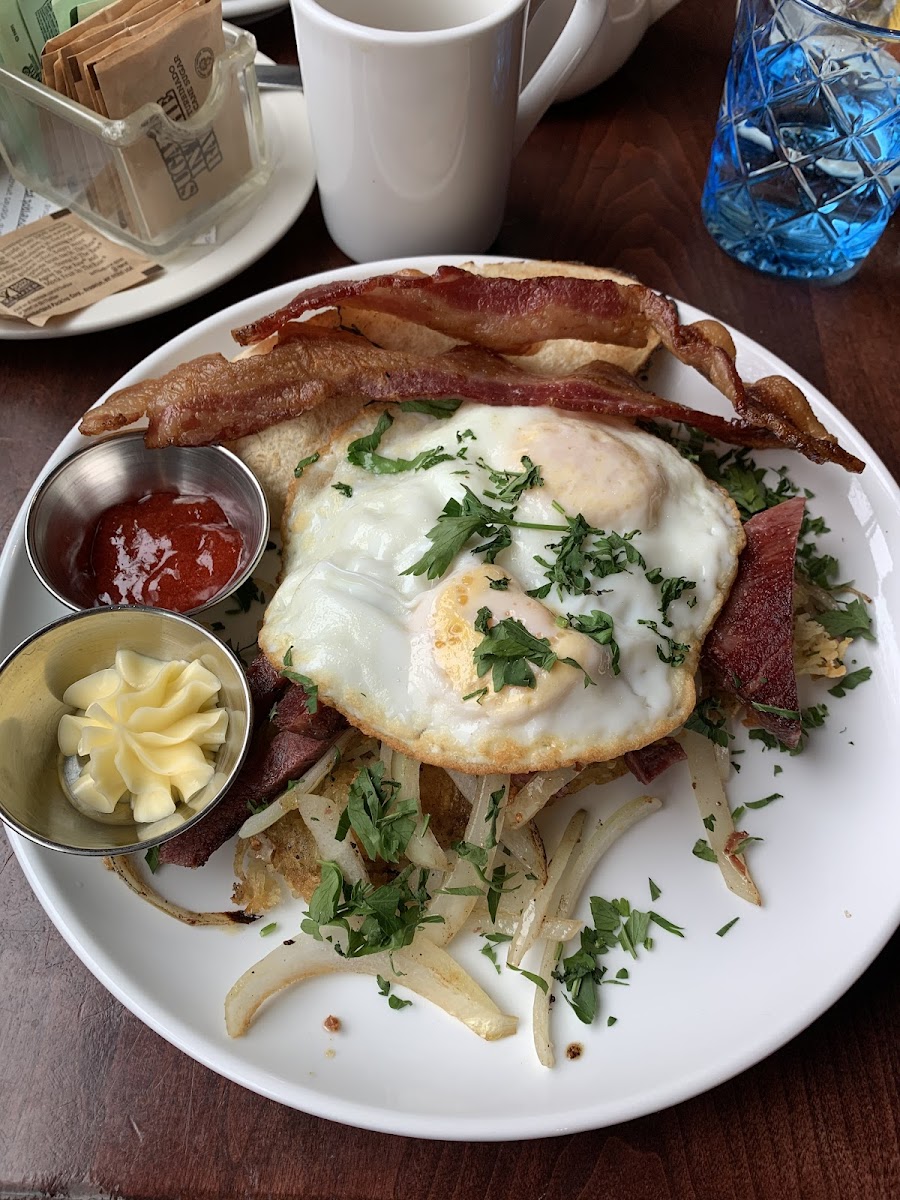 They put the eggs Benedict on top of the potatoes which means the tates get all deliciously goopy. I like to go here when I drop my car off at jiffy lube; treat yo'self 2024.