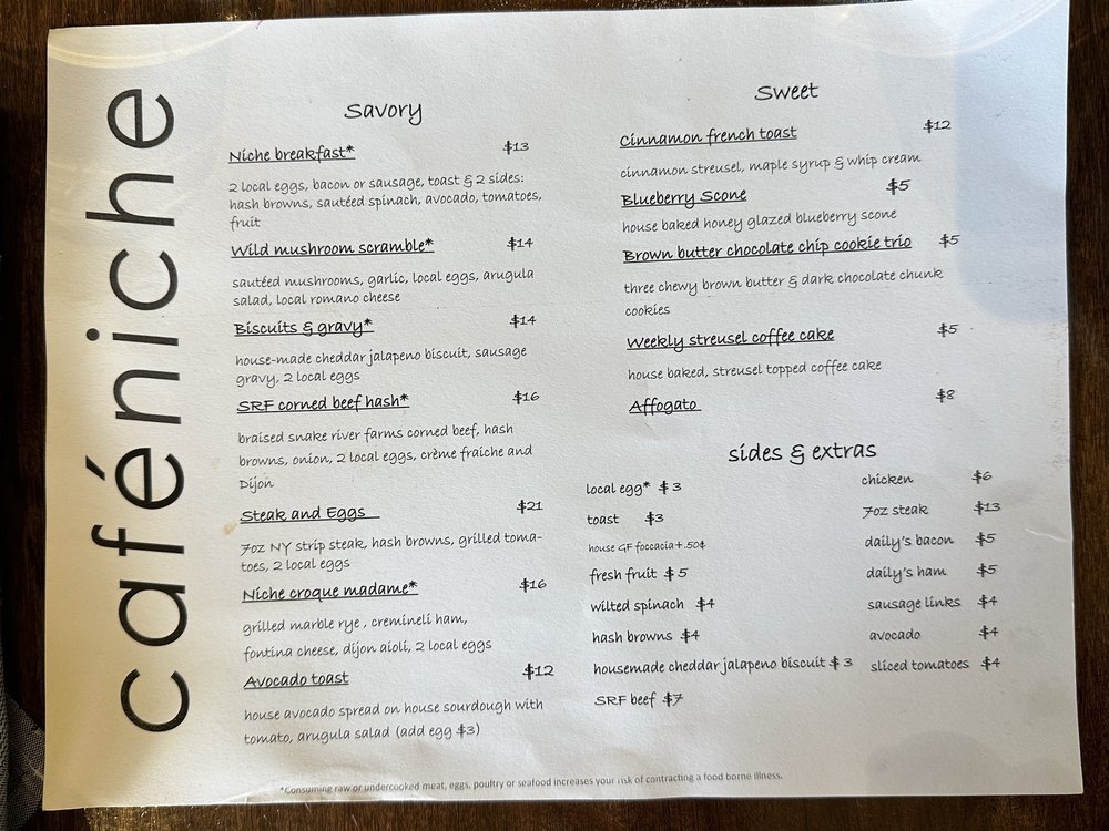 Cafe Niche, located in Salt Lake City, offers a delightful tapas/small plates breakfast and brunch menu. With vegan and vegetarian options available, the restaurant is wheelchair accessible, offers takeout and delivery, and has a full bar. Customers praise the flavorful dishes, such as the Niche Croque Madame and the Wild Mushroom Scramble with sourdough bread. The ambiance is described as cute and welcoming, with great service to match. Diners can enjoy outdoor seating, free Wi-Fi, and gender-neutral restrooms. The menu includes dishes like eggs Benedict on potatoes and Cinnamon French Toast that are not overly sweet. Customers also highlight the Peach Bellini cocktail and the cheddar jalapeño biscuit. With positive reviews and a variety of options, Cafe Niche is a must-visit spot for a delicious brunch experience.